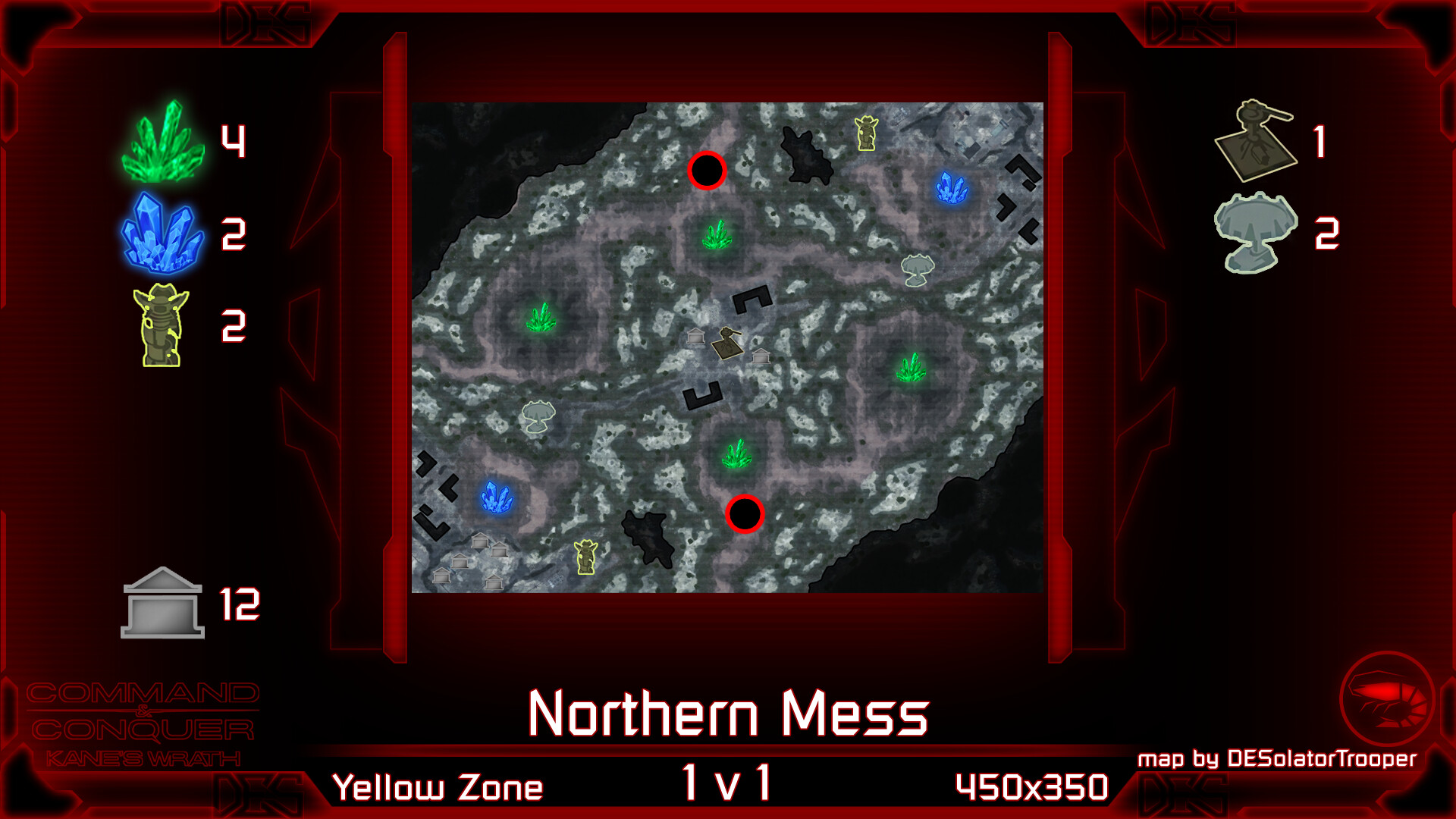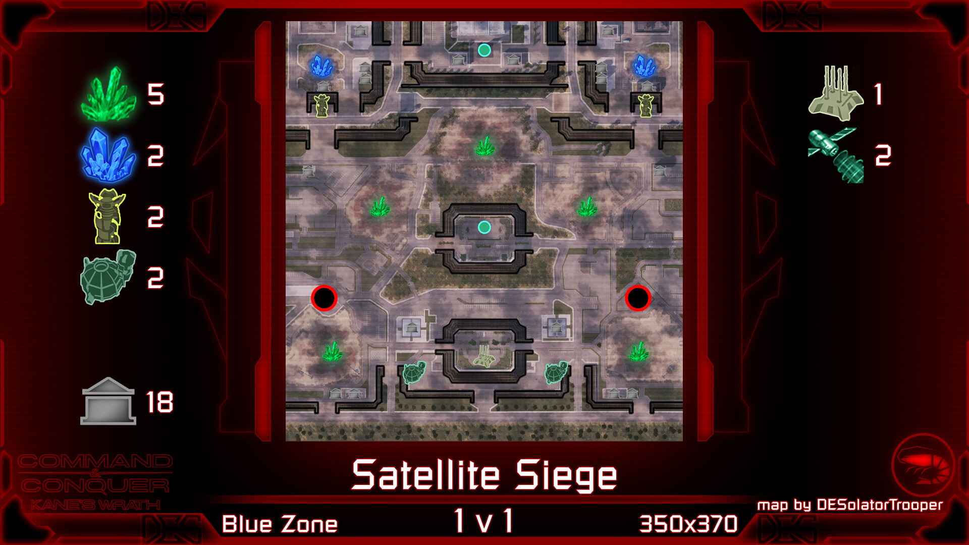 1v1 blue zone map. 350x370 size. 1st and 2nd sd fields, growing 3rd field (poker). 1 growing blue field per player (40sec per crystal). 1 spike and 1 silo per player. 1 poker EMP and 2 poker scout towers (new building, works only on compiled maps like r23)